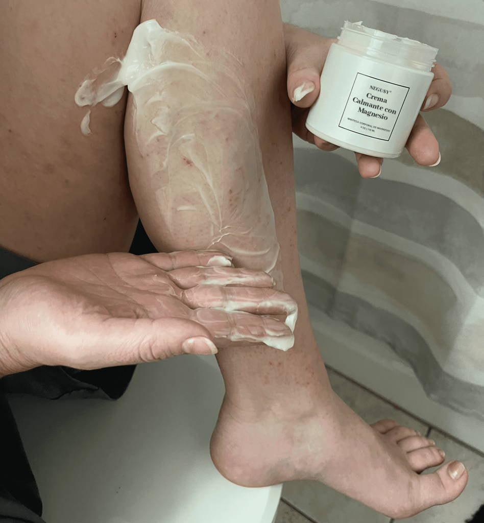 Ahora, un poco de Crema de Magnesio Calmante NEGUSY es mi ritual nocturno, un acto simple que asegura noches pacíficas.